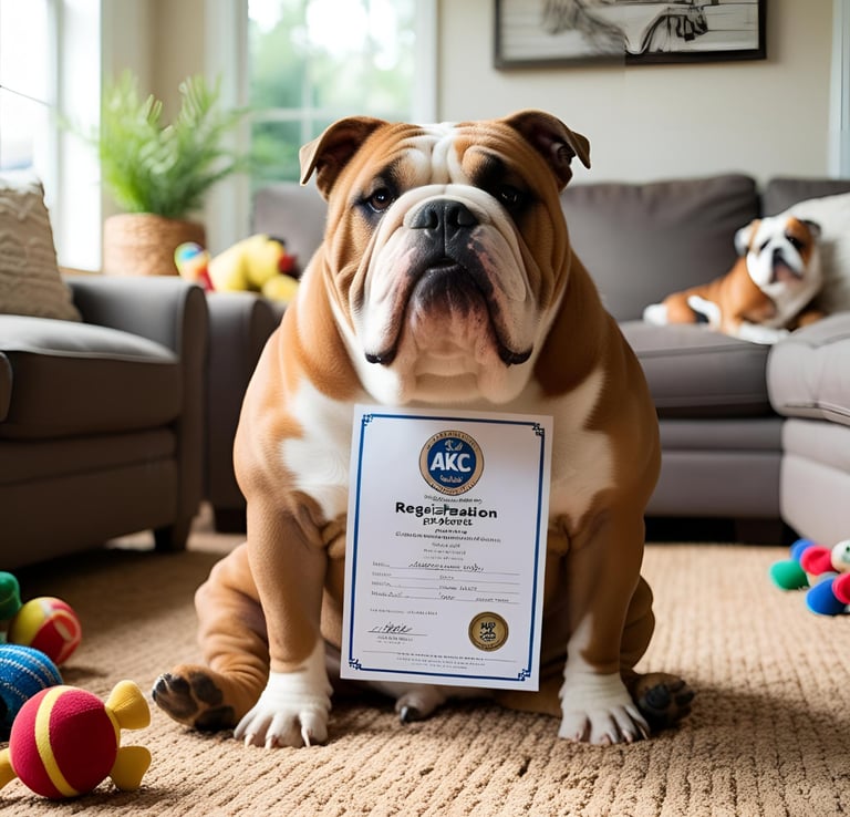 Every bulldog puppy from Yogostar Kennel comes with AKC (American Kennel Club) registration, ensuring they are purebred and recognized by the nation’s premier canine registry. This registration provides: